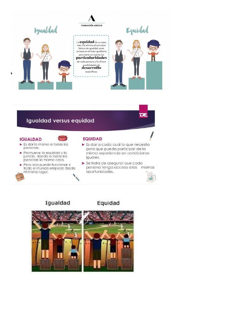 Además, igualdad de derechos, de género y social. La igualdad de género no solo es un derecho humano fundamental, sino que es uno de los fundamentos esenciales para construir un mundo pacífico, próspero y sostenible. En la modernidad, el modelo fabril se extrapoló a la educación, era lo innovador. La equidad introduce un principio ético o de justicia en la igualdad. Igualdad y equidad son dos principios tributarios que aunque no siempre se aplican al momento de el principio de equidad suele confundirse con el principio de igualdad, pero no es lo mismo, ya que.